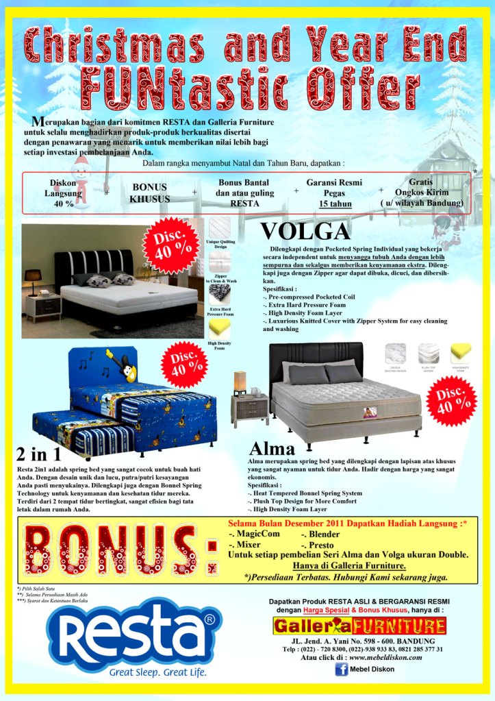 Harga Kasur Spring Bed – Promo Resta di Galleria Furniture Klik Disini Untuk Melihat Penawaran Menarik Kami Lainnya atau Hubungi Kami Di (022)-720 8300 Untuk Mendapatkan Informasi Lebih Lengkap, atau apabila Anda memiliki pertanyaan. Seleuruh Customer Relationship Officer kami yang bersahabat akan dengan senang hati melayani Anda. TERIMA KASIH Share this: Click to share on X (Opens in new window) X Click to share on Facebook (Opens in new window) Facebook Like Loading... Related