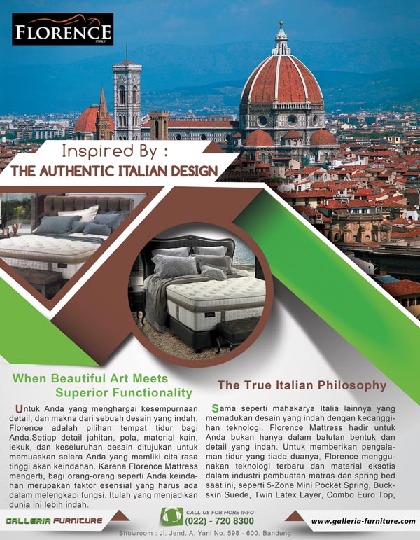 Spring Bed Florence merupakan salah satu produk kasur dan spring bed dengan desain paling indah. Sangat cocok bagi Anda yang menginginkan tampilan ruang tidur yang menawan.