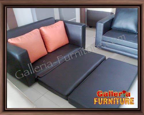 Sofa Bed dengan warna dasar dan motif atau warna bantal yang dapat Anda kombinasikan sendiri sesuai kreasi dan selera Anda pribadi. Dapat dibuat dari bahan kulit sintetis bermutu, atau kulit asli sesuai dengan pilihan Anda.